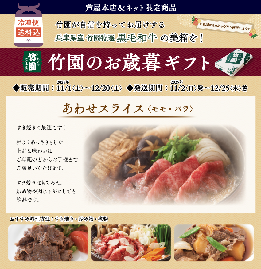 《兵庫県産》竹園特選黒毛和牛 あわせスライス <モモ・バラ> 送料込