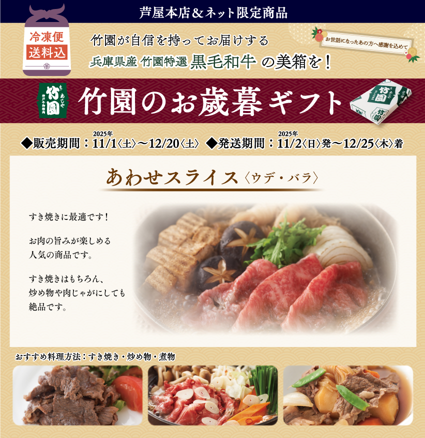 《兵庫県産》竹園特選黒毛和牛 あわせスライス <ウデ・バラ> 送料込