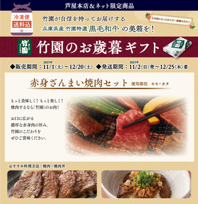 《兵庫県産》竹園特選黒毛和牛 赤身ざんまい焼肉セット 送料込