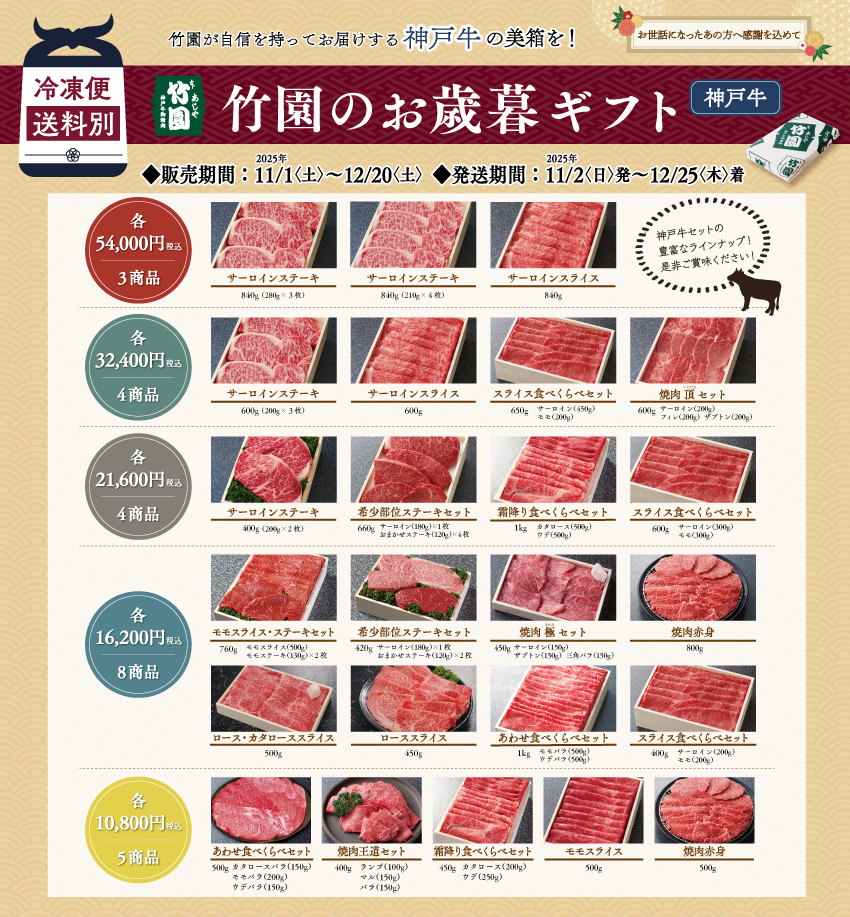 竹園が自信をもってお届けする神戸牛の美箱を!
